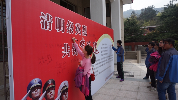 大家對革命先烈的墓碑進(jìn)行清掃,向革命英雄三鞠躬,并敬獻(xiàn)了花籃,青年們來到抗日戰(zhàn)爭宣傳展板前參觀,追思為國家興衰、民族存亡不惜拋頭顱、灑熱血的英雄,深切緬懷革命先烈?;顒?dòng)中,大家在“清明祭英烈,共鑄中華魂”宣傳牌前依次留言明志,誓將革命先烈大無畏的奉獻(xiàn)精神傳承下去,在自己的崗位上開花結(jié)果,讓青春無悔。