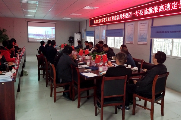 考察團由江蘇省交通工程建設局質量安全技術監(jiān)督處副處長費國新帶隊,滁淮高速定長段項目辦副主任李小紅、蚌埠市公路局有關領導、安徽路橋路面公司總工程師曹祝林等參加交流活動。