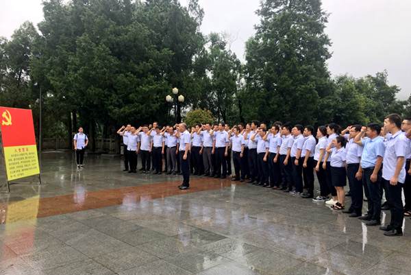 下午,大家冒著細(xì)雨來到金寨縣紅軍廣場,向革命烈士敬獻(xiàn)了花籃。在巍峨的革命烈士紀(jì)念塔下,面對鮮艷的黨旗,公司黨委委員、總工程師彭申凱帶領(lǐng)全體黨員一起重溫了入黨誓詞。