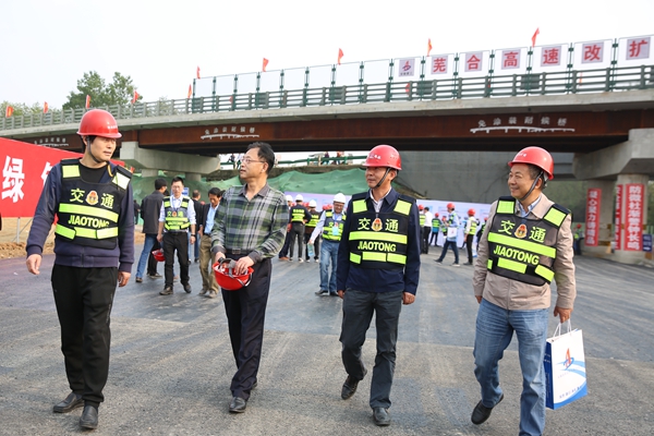 10月17日下午,中國(guó)公路學(xué)會(huì)2018標(biāo)準(zhǔn)化年會(huì)代表到蕪合改擴(kuò)建02標(biāo)項(xiàng)目進(jìn)行觀摩交流,蕪合高速改擴(kuò)建項(xiàng)目辦主任于春江、公司副總經(jīng)理杜海峰等陪同。