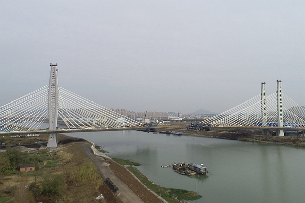 遠(yuǎn)遠(yuǎn)的就能看見,在巢湖市東南的裕溪河上,兩對(duì)魚梭型的塔柱高聳入云,分立兩岸,仿佛四位銀色衛(wèi)士,在守衛(wèi)著居巢大地。