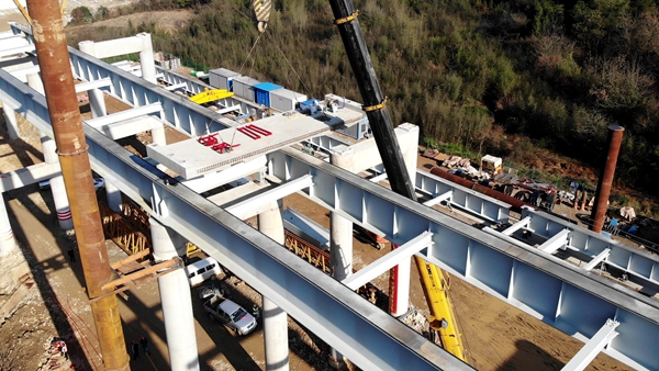 12月16日,蕪黃路基07標項目兩項節(jié)點工程取得突破,下葉村特大橋鋼板組合梁橋面板順利完成首件安裝,馬鞍山隧道實現(xiàn)雙幅貫通,標志著該項目控制性工程取得階段性勝利,朝著2021年建成通車目標邁進了堅實一步。