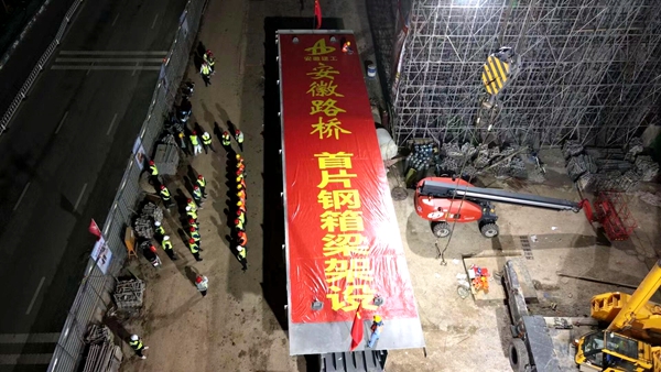 3月25日23時(shí),安徽路橋合肥市南二環(huán)金寨路、合作化路節(jié)點(diǎn)工程施工現(xiàn)場燈火通明,項(xiàng)目正式啟動(dòng)主線橋鋼箱梁架設(shè)作業(yè),標(biāo)志著該項(xiàng)目在全線率先進(jìn)入主線橋上部結(jié)構(gòu)施工,較計(jì)劃工期節(jié)點(diǎn)提前了20天。