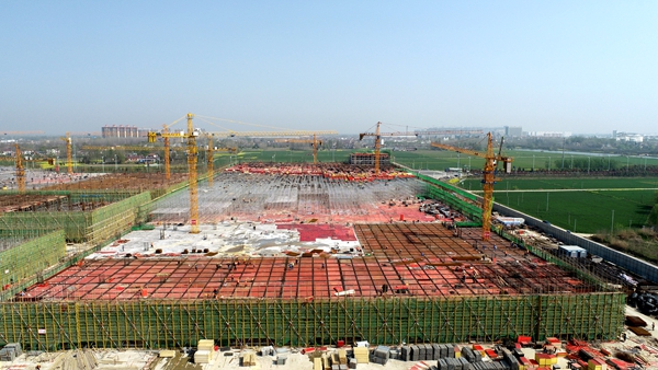 春節(jié)后,舒城縣智慧電子小鎮(zhèn)呈現(xiàn)多點(diǎn)突破、蹄疾步穩(wěn)、縱深推進(jìn)的新局面,三大主廠房陸續(xù)進(jìn)行封頂施工,預(yù)示著主廠房施工全部進(jìn)入倍數(shù)“快進(jìn)階段”。