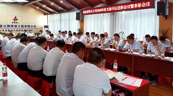 5月29日,市政分公司2020年度黨支部書(shū)記述職評(píng)議暨表彰會(huì)議在引江濟(jì)淮繁華大道橋項(xiàng)目部召開(kāi),分公司領(lǐng)導(dǎo)班子成員、分公司后勤部門(mén)負(fù)責(zé)人及所屬各項(xiàng)目支部負(fù)責(zé)人、項(xiàng)目經(jīng)理和部分職工代表80余人參加會(huì)議。