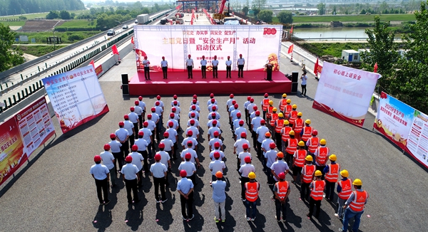 6月1日上午,道路分公司2021年“安全生產(chǎn)月”啟動(dòng)儀式暨“學(xué)黨史、辦實(shí)事、筑安全、促生產(chǎn)” 主題黨日活動(dòng)在合寧改擴(kuò)建滁河大橋施工現(xiàn)場(chǎng)成功舉辦。公司黨委委員、副總經(jīng)理杜海峰出席活動(dòng)并宣布“安全生產(chǎn)月”啟動(dòng),分公司領(lǐng)導(dǎo)班子、后勤部門(mén)負(fù)責(zé)人,省內(nèi)各項(xiàng)目經(jīng)理、支部書(shū)記及安全部長(zhǎng),肥東片區(qū)項(xiàng)目黨員、團(tuán)員青年及一線(xiàn)工人代表共計(jì)百余人參加活動(dòng)。