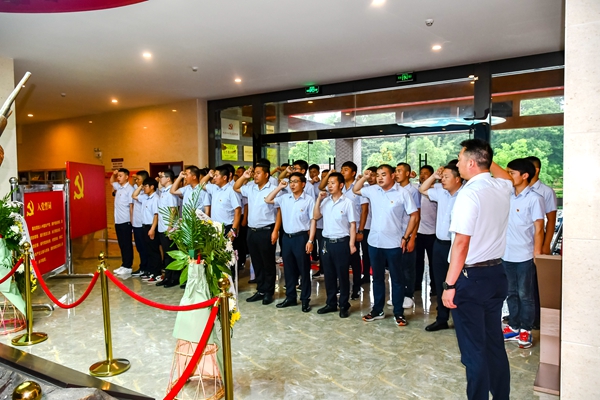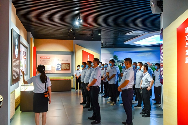 隨后,在講解員的帶領(lǐng)下,大家參觀了紀(jì)念館,面對一件件革命文物、一份份珍貴史料、一個個紅色故事,親身感受革命先輩的光輝歷史。王秋華結(jié)合新民主主義革命時期歷史,向各位黨員寄語并提出希望。他強調(diào),要充分利用紅色資源,進一步教育引導(dǎo)黨員從百年黨史中汲取智慧,全力激發(fā)“十四五”開好局、起好步的強大精神動力,切實以昂揚姿態(tài)開啟分公司發(fā)展新篇章,以優(yōu)異成績迎接建黨100周年。