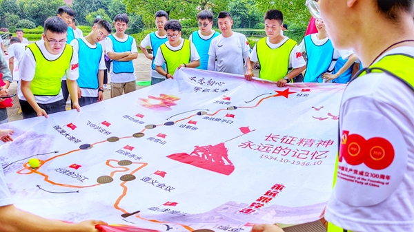 在新四軍江北指揮部紀(jì)念館,全員參觀了館藏的200余幅珍貴歷史照片、圖表和文獻資料,認真了解了新四軍組建、發(fā)展和壯大的歷程,切實的感受革命先烈們?yōu)榱诵轮袊膭倮麙侇^顱灑熱血的大無畏精神。隨后,大家共同完成了《歌唱祖國》合唱、“長征精神”、“雷區(qū)取水”、填寫入職寄語和觀看愛國主義教育片《建黨偉業(yè)》等一系列團建活動,在培養(yǎng)新員工團隊協(xié)作能力的同時,進一步加強了紅色教育。