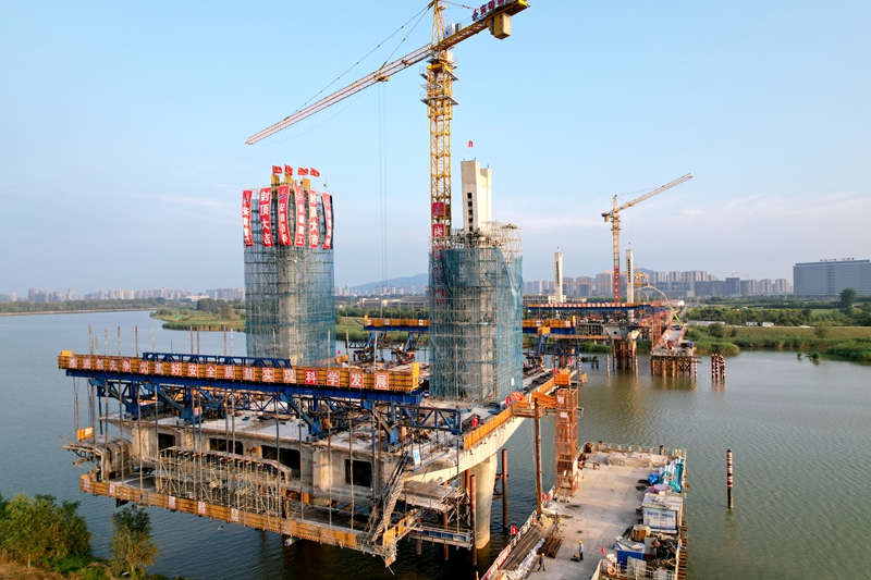 G206-03標(biāo)渦河八橋主塔全部封頂