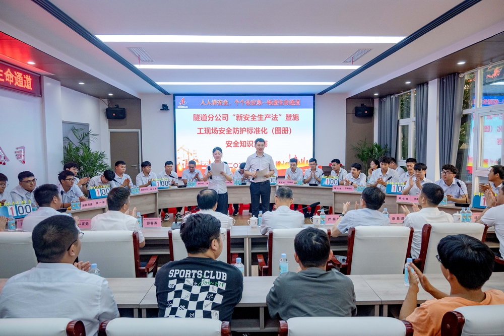 6月29日下午,隧道分公司組織開展“新安全生產法與施工現(xiàn)場安全防護標準化”知識競賽活動。省交通質安中心安全生產監(jiān)管處副處長嚴搖鈴,分公司領導班子、機關各部門負責人、所屬項目經(jīng)理及職工代表現(xiàn)場觀賽。