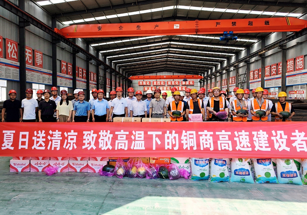 8月8日上午,省鐵投公司黨委副書(shū)記、總經(jīng)理何勝利帶隊(duì)到銅商高速主體1標(biāo)開(kāi)展“夏日送清涼”慰問(wèn),為高溫下堅(jiān)守一線的建設(shè)者們送去防暑降溫物資,叮囑項(xiàng)目要做實(shí)做細(xì)防暑降溫工作,合理調(diào)整作業(yè)時(shí)間,切實(shí)保障廣大建設(shè)者的生命健康安全。