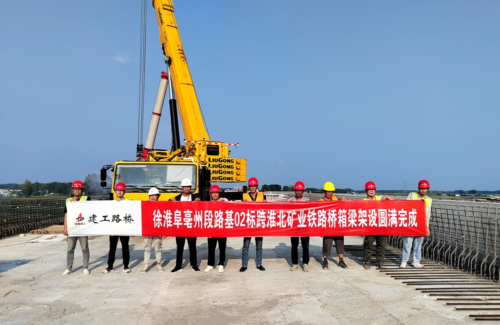 【路橋“競”行時(shí)】徐淮阜高速亳州段路基02標(biāo)跨淮北礦業(yè)鐵路橋箱梁架設(shè)完成