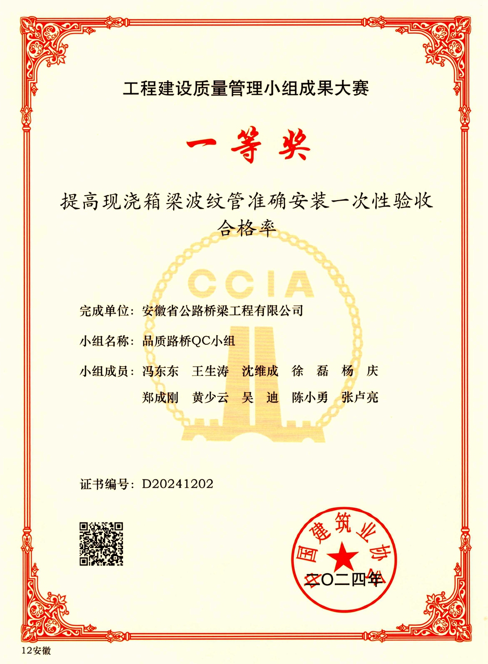 近日,中國建筑業(yè)協(xié)會(huì)公布了2024年工程建設(shè)質(zhì)量管理小組成果大賽名單,公司申報(bào)3項(xiàng)QC成果榜上有名。