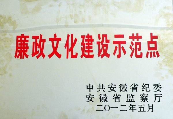 近日,公司被中共安徽省紀(jì)委、安徽省監(jiān)察廳命名為全省第三批廉政文化建設(shè)示范點,成為全省獲此榮譽(yù)的17家省屬企業(yè)之一。