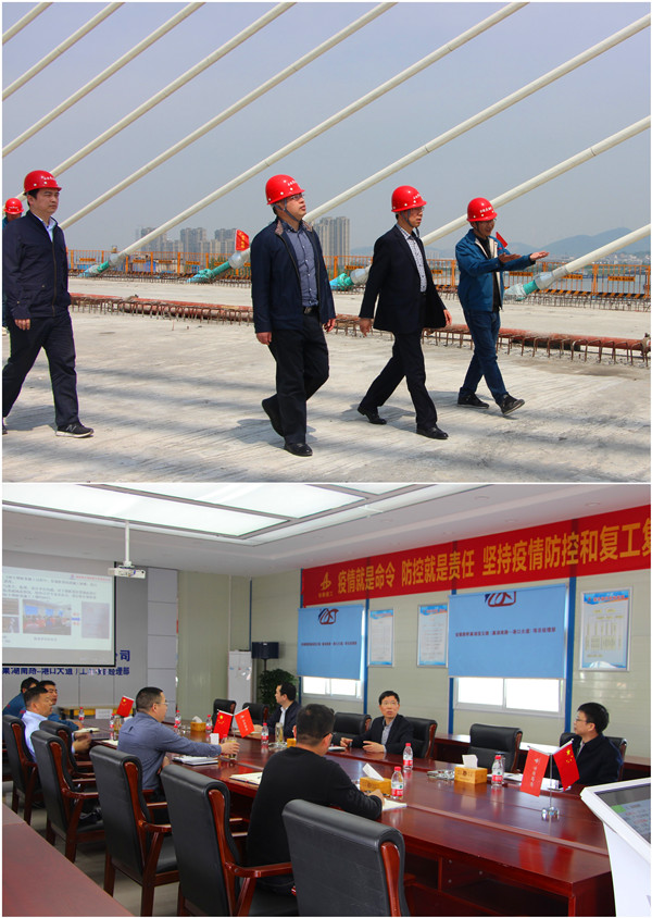王厚良深入施工現(xiàn)場,實(shí)地調(diào)研項(xiàng)目建設(shè)情況,查看了項(xiàng)目主橋承臺、塔柱、斜拉索、主梁等建設(shè)情況,詳細(xì)詢問了主橋合龍計(jì)劃。在項(xiàng)目部會議室,王厚良認(rèn)真聽取了項(xiàng)目負(fù)責(zé)人關(guān)于工程建設(shè)管理的工作匯報,對工程進(jìn)度、安全質(zhì)量和科技創(chuàng)新管理及黨建工作開展等情況進(jìn)行了全面了解。王厚良對項(xiàng)目建設(shè)情況表示肯定。他強(qiáng)調(diào),要繼續(xù)強(qiáng)化安全管理,做好工程收尾工作,加強(qiáng)管理經(jīng)驗(yàn)和技術(shù)創(chuàng)新總結(jié),為創(chuàng)優(yōu)奪杯打好基礎(chǔ)。要結(jié)合工程施工管理和技術(shù)亮點(diǎn),加強(qiáng)宣傳,展示企業(yè)形象、實(shí)力,擴(kuò)大市場影響力。要繼續(xù)提高經(jīng)營能力水平,在長江大橋市場、軌道交通市場進(jìn)一步拓展,實(shí)現(xiàn)項(xiàng)目落地。