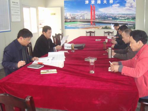 戴總一行深入施工一線,實(shí)地察看了大橋的建設(shè)情況,與現(xiàn)場技術(shù)人員和施工人員進(jìn)行了親切的溝通交流。隨后,戴總一行在項(xiàng)目部會議室召開了座談會,就淠望路大橋施工方案、施工工序進(jìn)行了詳細(xì)的剖析,并提出了具有建設(shè)性的指導(dǎo)意見。