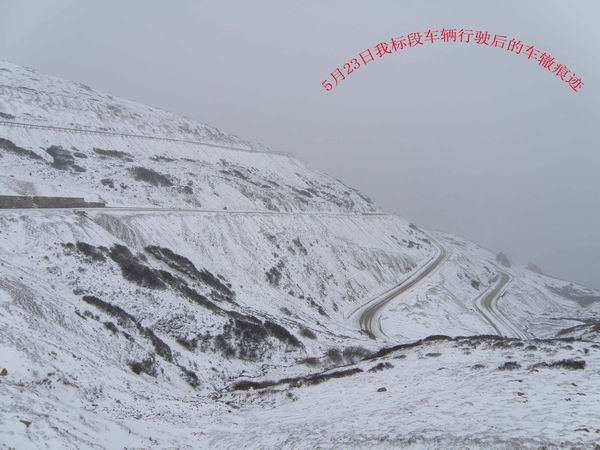 5月23日,黃路02標(biāo)又一次迎來了一場(chǎng)大雪。與此同時(shí),距項(xiàng)目部并不十分遙遠(yuǎn)的漳黃路改建項(xiàng)目01標(biāo)卻是萬里無云、陽光明媚,讓我們真正體驗(yàn)到了高原氣候的變化無常。