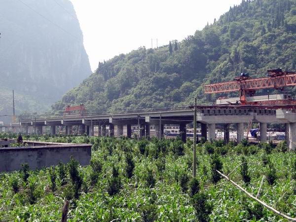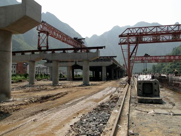 610上午1020,,隨著架橋機將本聯(lián)最后一片20米預應力空心板梁穩(wěn)穩(wěn)的降落在皂角樹特大橋第55號橋墩蓋梁的臨時支座上時,安徽路橋宜巴高速09標順利的完成了皂角樹特大橋第一聯(lián)空心板梁的架設.