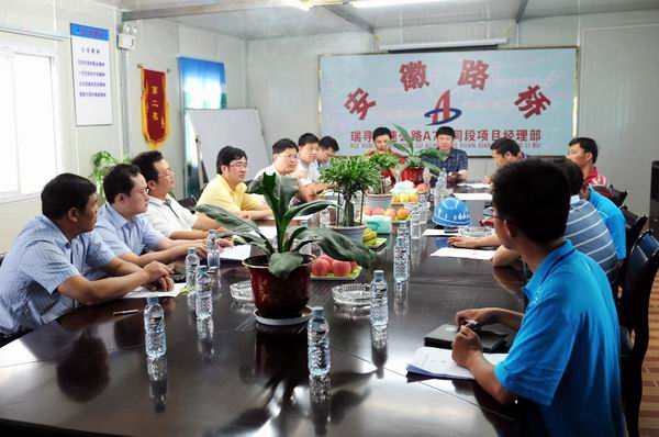 會上,投資集團劉總肯定了我項目部在施工建設方面所取得的成績,認為瑞尋A7標項目部總體施工計劃好,施工組織能力強,給整個工程的建設創(chuàng)造了良好的條件,也給兄弟標段項目部施工建設起到了示范作用。同時希望安徽路橋項目部繼續(xù)鼓足干勁,在以后的安全生產和質量管理各方面為瑞尋高速公路工程建設起到“標兵”作用。