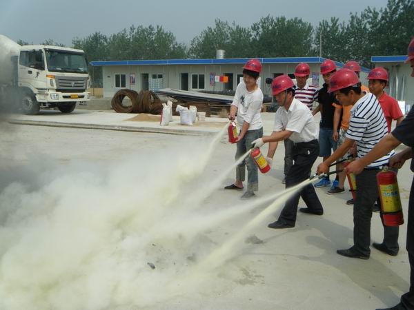 鳳陽(yáng)縣消防支隊(duì)派出業(yè)務(wù)骨干進(jìn)行培訓(xùn)和現(xiàn)場(chǎng)指導(dǎo)演練,重點(diǎn)對(duì)施工現(xiàn)場(chǎng)安全的隱患點(diǎn)做了詳細(xì)分析,對(duì)消防滅火器材的種類(lèi)、型號(hào)、使用方法進(jìn)行了講解和現(xiàn)場(chǎng)指導(dǎo)。本次消防演練由技術(shù)指揮組、搶救組組成。參加培訓(xùn)人員在掌握基本常識(shí)基礎(chǔ)上對(duì)施工現(xiàn)場(chǎng)所配備的干粉滅火器進(jìn)行實(shí)際操作,進(jìn)行滅火演練。