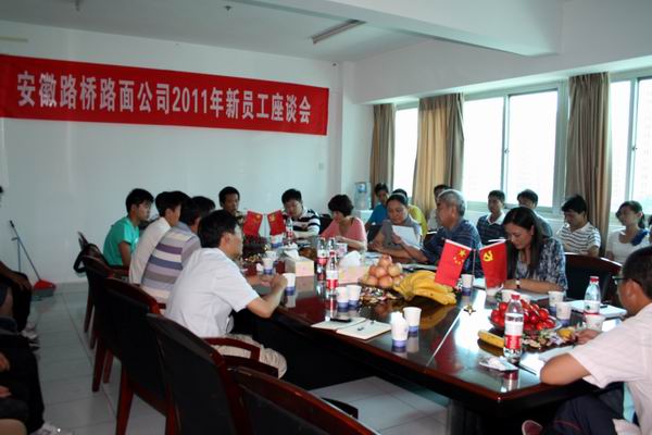 為進(jìn)一步了解新員工的思想動態(tài),促進(jìn)員工之間、員工與領(lǐng)導(dǎo)之間的溝通和交流,使新進(jìn)員工盡快融入到安徽路橋路面公司這個大家庭中來,7月6日上午,安徽路橋路面公司2011屆新員工座談會在路面公司六樓會議室舉行。公司黨支部書記王年保、總經(jīng)濟(jì)師袁青嶺、工會副主席姚光群、租賃公司經(jīng)理蔡傳勇以及周六路項(xiàng)目經(jīng)理王小杰、蚌淮路項(xiàng)目副經(jīng)理姚琪等領(lǐng)導(dǎo)及新進(jìn)員工40余人參加了座談會。會議由人力資源部經(jīng)理錢紅梅主持。