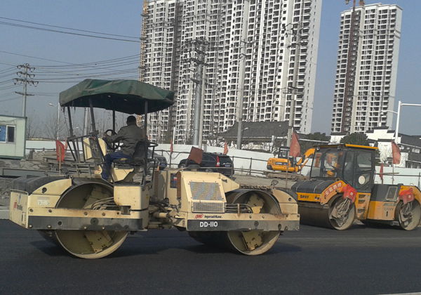 隨著第一輛運(yùn)料車進(jìn)入施工現(xiàn)場,攤鋪機(jī)開始啟動,倒料、攤鋪、碾壓一條龍作業(yè),路面很快成形。為加快工程進(jìn)度,現(xiàn)場采用兩臺攤鋪機(jī)同時(shí)作業(yè)。此次瀝青砼攤鋪長度為1.2公里,懷寧北路路面瀝青攤鋪分三層,當(dāng)天鋪設(shè)的是下面層粗礫石。