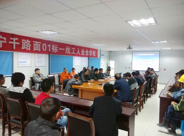 11月4日晚,寧千路面01標會議室座無虛席,40余名農(nóng)民工兄弟再一次享受著該項目農(nóng)民工業(yè)余學(xué)校帶來的知識和樂趣。